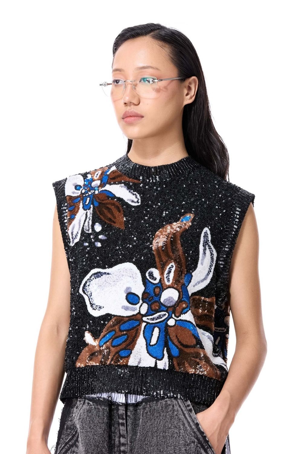 Multi-coloured hand embellished top.