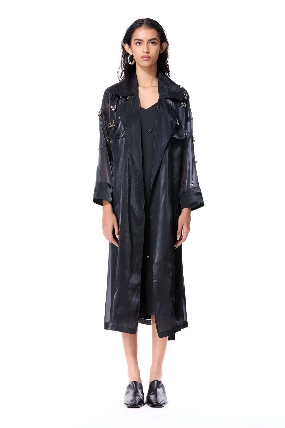 The model is a standard small size and is 179 cm tall. She is wearing a medium size