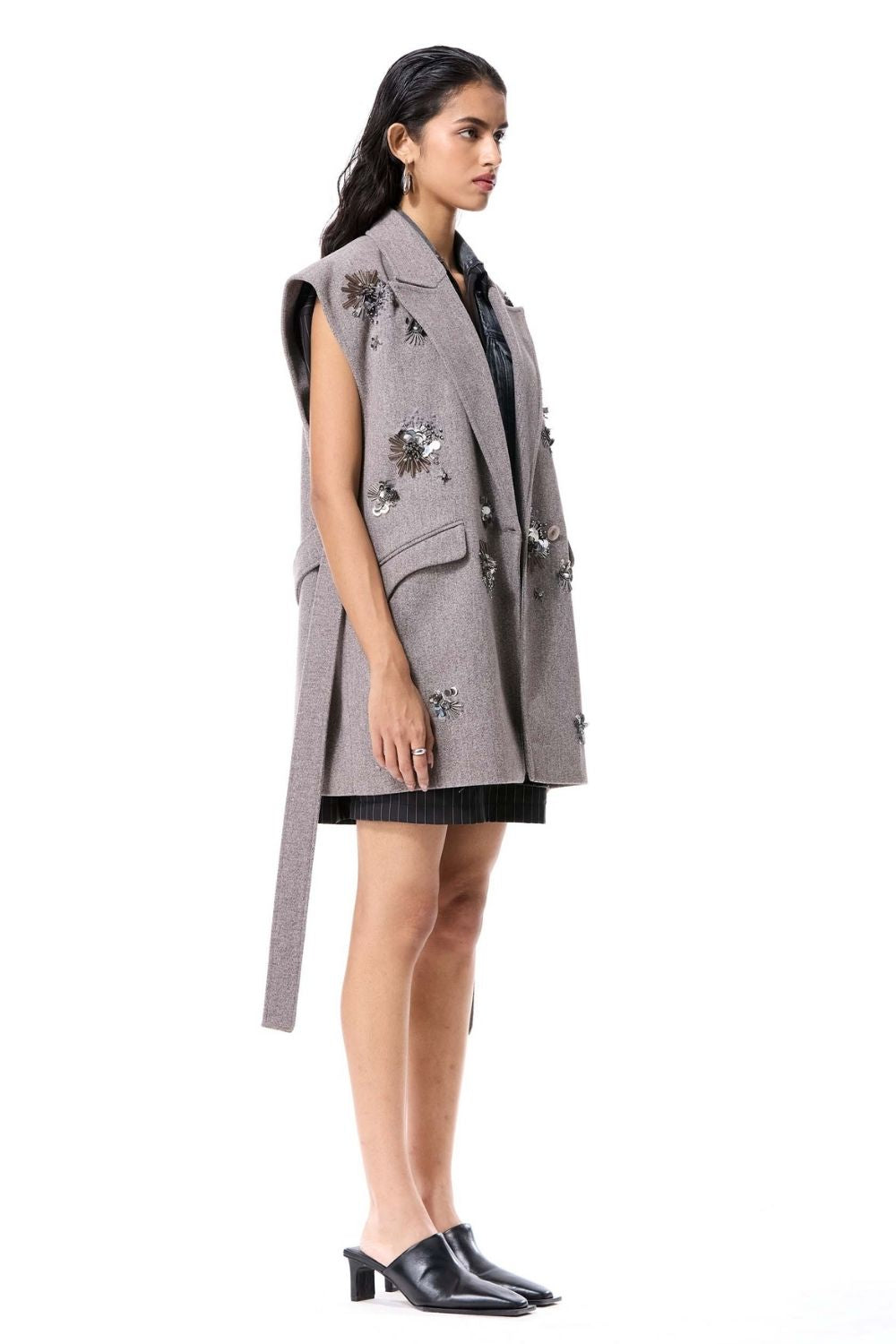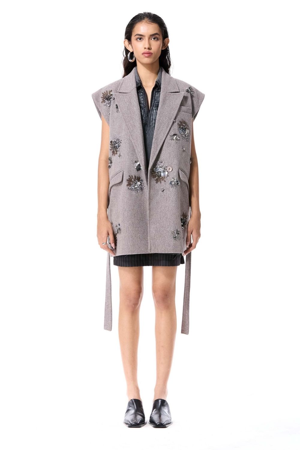 The model is a standard small size and is 179 cm tall. She is wearing a medium size