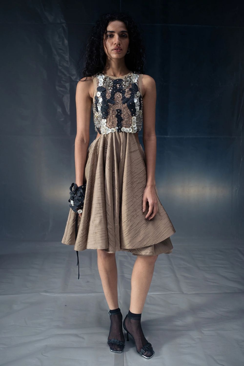 Button and rubber in units in abundance run along the fire lines set in by in play, the stippling form from the satin crush in a Sculpted peplum dress with a racer back and circular scoop cut-outs at the side hem create the carbon dust fold dress.