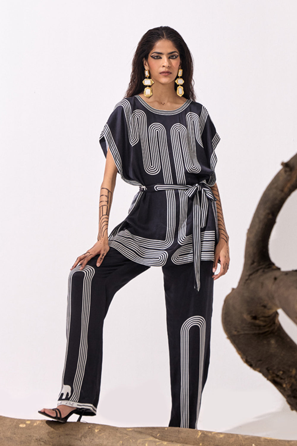 Style Tips: The perfect choice for a formal dinner, jazz up your classic black pants with gold accents and high heels.