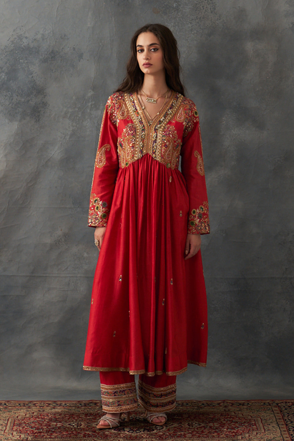 Gulrez Front gathered Kalidar set with heavy embroidered bottom & dupatta.