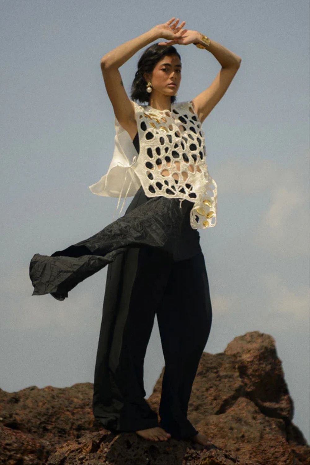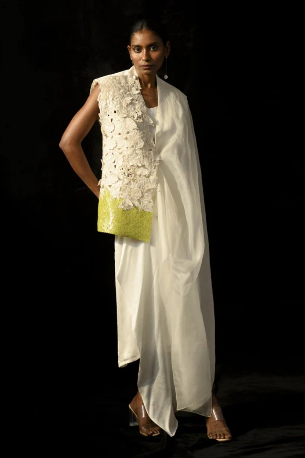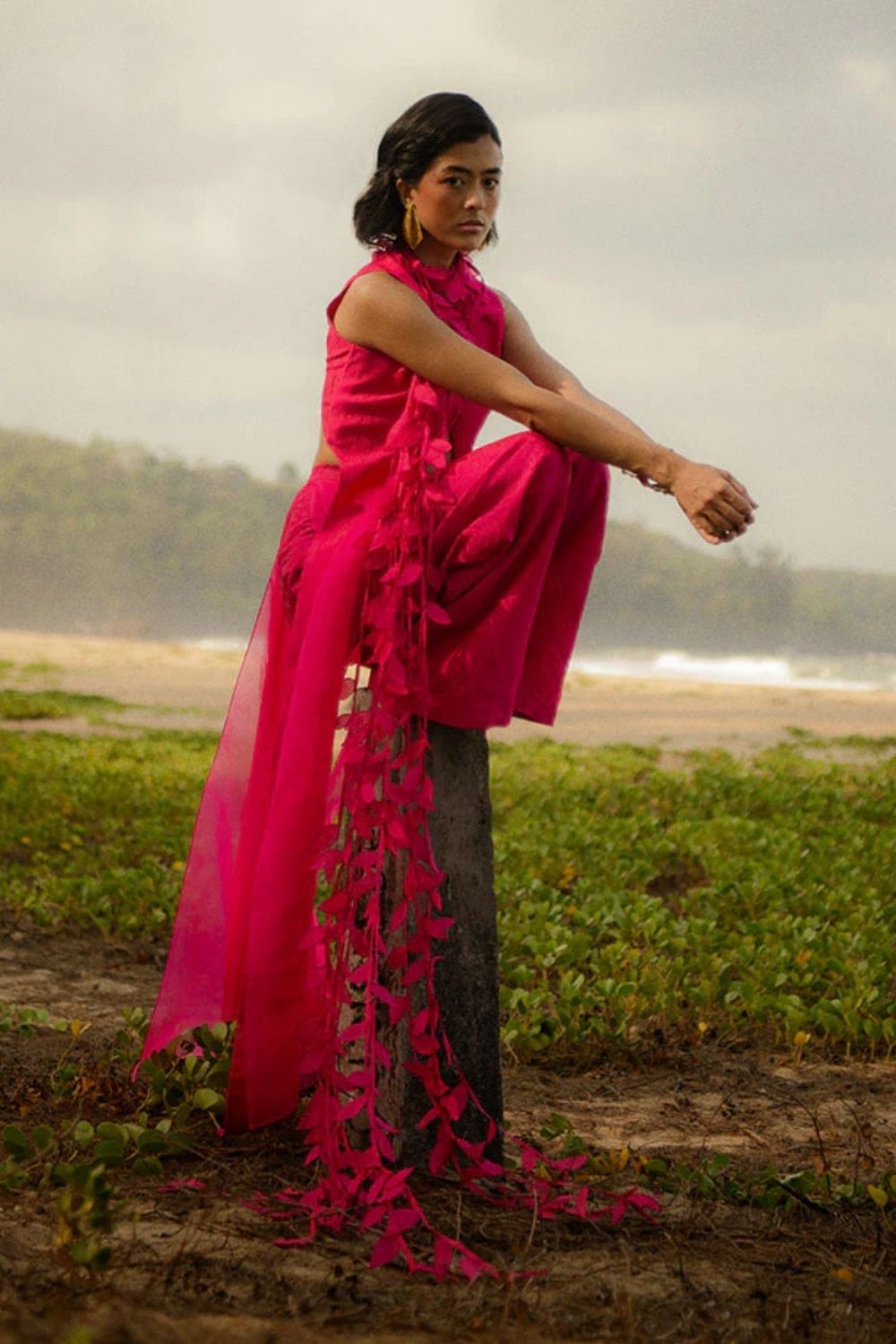 Minimalism meets modern sophistication with Richa Khemka. Her meticulously crafted pieces blend structured elegance with fluid drapes, offering a timeless appeal for the discerning dresser. Discover effortless luxury at Bombaim.